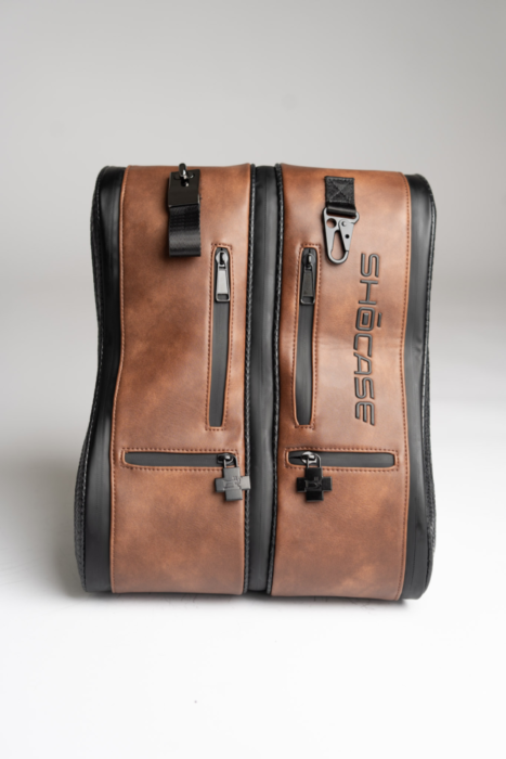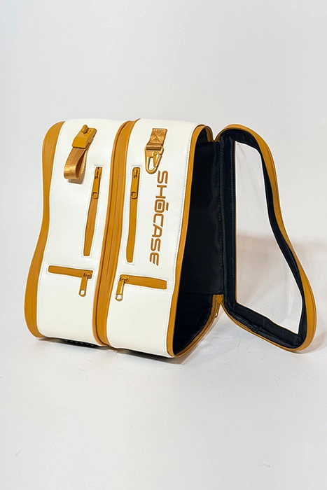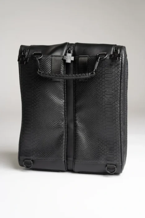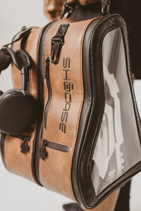 The Shōcase Signature Shoe Bag is built for athletes, sneaker collectors, and style-driven travelers. Crafted from premium vegan leather with snakeskin texture accents and dual clear display windows, it protects your sneakers while letting them shine. Each bag features separate compartments for your shoes, front accessory pockets, and multiple carry options—backpack straps, a top handle, or detachable shoulder strap.