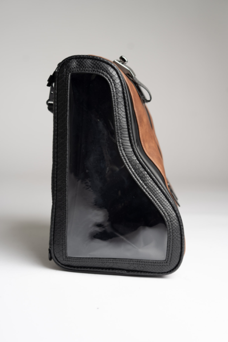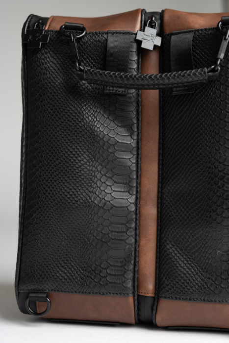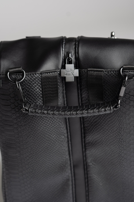 - Premium vegan leather with black snakeskin texture